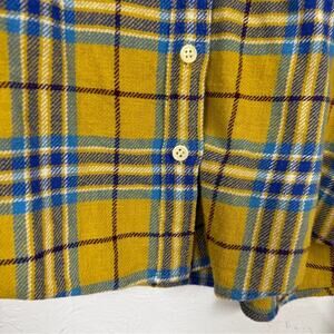 J Crew Yellow Blue Plaid Button Down Shirt Womens 6 Boy Fit Casual Flannel Fall