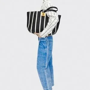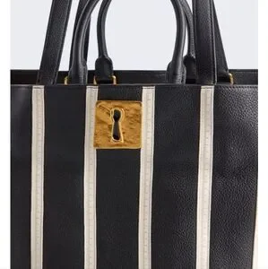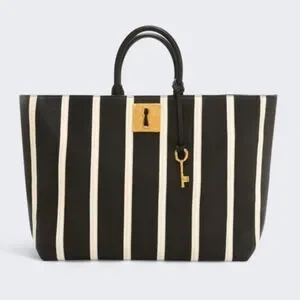 She was often found in her atelier with a tape measure draped around her neck β a much-used essential for any designer and seamstress β and Schiaparelli takes this motif and applies it throughout its ready-to-wear and accessory collections. Here, the tape measure forms the stripes on the leather body of this tote bag, a silhouette that leans into the East-West profiles that are a trend-to-know for Spring/Summer 2025.