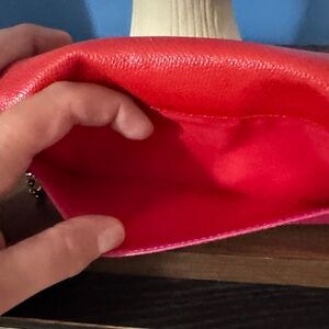 Stylish red and pink crossbody bag with a chic chain strap. Chain is removable. This bag needs some help. Used condition. Very clean inside. Chain is 50”