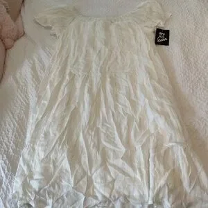Youth white dress, short sleeves, sparkly stripes along the whole dress. Only worn once, still has tag. Size XL (14/16)