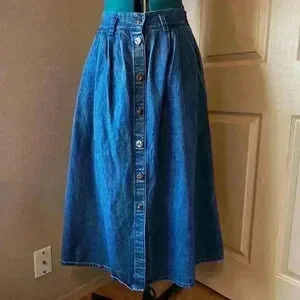 Vintage Cherokee Denim Button Up Skirt 100% cotton Blue Jeans