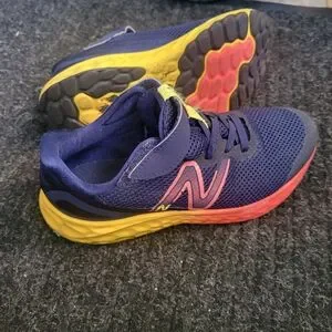 Stylish New Balance sneakers for kids. Navy with red and yellow accents. Comfortable and durable for everyday wear.