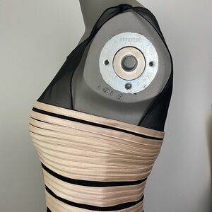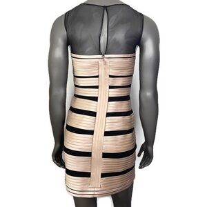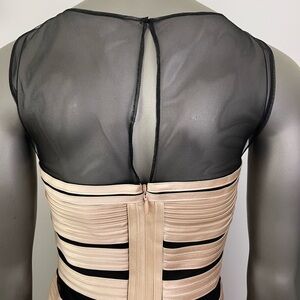 BCBGMaxazria Dress Womens 6 Champagne Satin Mesh Sleeveless Short Party Sexy