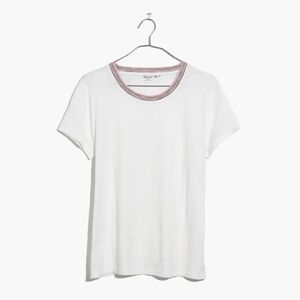 Madewell White Whisper Cotton Ringer Tee, Rainbow Collar Size XXS