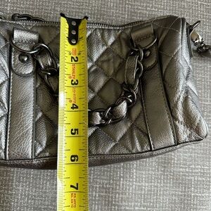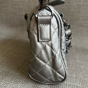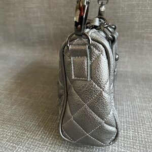 Poppie Jones Chic Silver Quilted Crossbody Shoulder Bag silver metallic