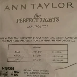 Ann Taylor Black Control Top Perfect Tights, NWT, Size Large