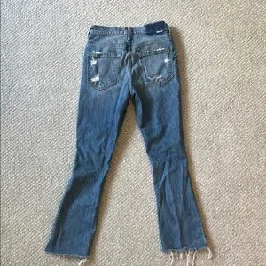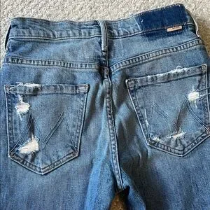 MOTHER Blue Distressed Ankle Length Jeans
