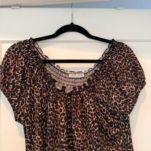 Chic animal print blouse with short sleeves. Perfect for any occasion.