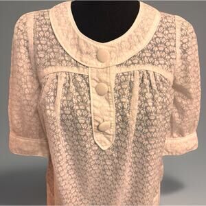 French Connection Blouse 4 Womens Semi Sheer Burnout Cottagecore Top Twee