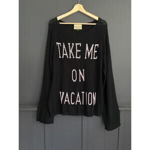 Wildfox White Label Black Take me on Vacation Oversized Knit Sweater Size Small