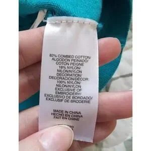 Blue 3/4 length sleeve cardigan with flowers made of ribbons. Jones new York signature size medium