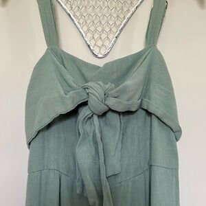 ALLIE ROSE Linen Blend Wide Leg Smocked Tank Jumpsuit Tie Front Coastal Boho | M