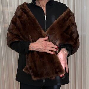 Genuine Mink Stole - Chocolate Brown - One Size Fits All