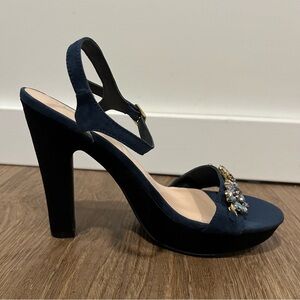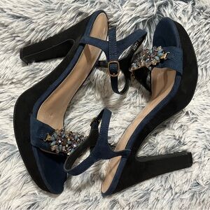 N by Nicole Miller Blue Lexus jeweled block platform heel.