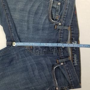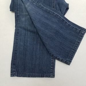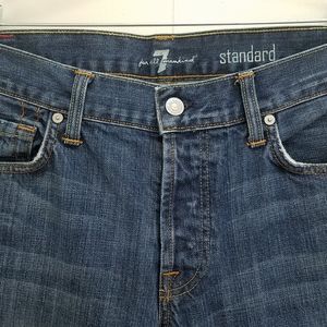 7 For All Mankind standard jeans. Five pocket styling, button fly, size 32, gently used condition, hem at the bottom doesn't seem to be the original (see picture#8), so please see pictures for measurements and details.