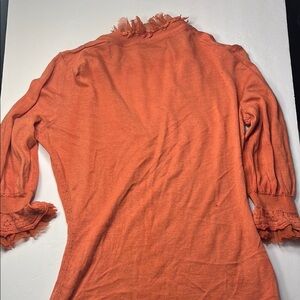 Elie Tahari Coral Orange Ruffled 3/4 Sleeve Blouse Size XS Cashmere COTTAGECORE