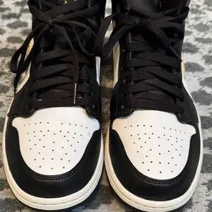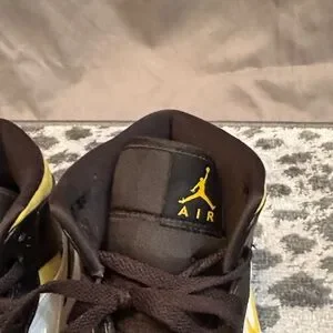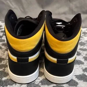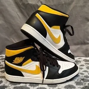 Excellent condition. Elevate your look with these Nike sneakers. Bold black, white, and yellow design. Ideal for casual wear.