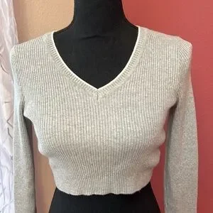 Brandy Melville Cropped Long Sleeve Ribbed Knit Top