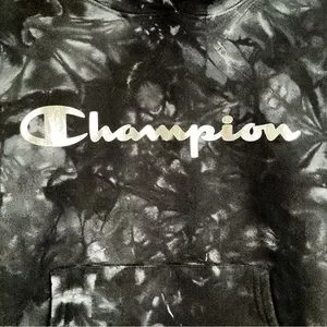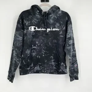 New with tags Champion Reverse Weave Pullover Hoodie Sweatshirt. Black with gray tie dye patterns. Silver metallic color Champion across the chest. Front pouch pocket. Drawstring cinch hood. Please see all pictures!