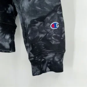 NWT Champion Reverse Weave Black Gray Tie Dye Pullover Hoodie Women’s Size Large