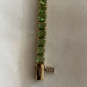Givenchy fashion peridot and gold tone tennis bracelet. 7”