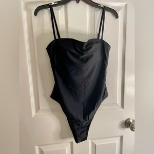 Turn heads at the beach or pool with this Relleciga sexy one piece swimsuit in size L (NWT). Showcasing a classic black bandeau with medium coverage, this swimsuit blends timeless style with a touch of retro French design for an effortlessly chic look. Perfect for pairing with a floppy sun hat and oversized sunglasses for that sultry, sophisticated vibe.