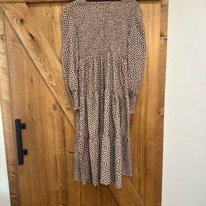 Chic and stylish polka dot skirt with long sleeves. Perfect for any occasion.