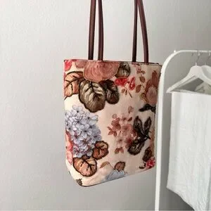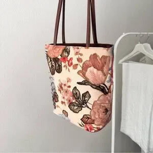 Vintage Floral Beaded Tote Bag