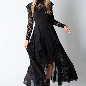 Goth Ruffle Lace Boho Witchy Sveta Dress in Black Sveta
