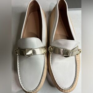 Cole Haan Driver Loafers Evelyn Bow Embossed Leather Shoes Women’s 10 Nude White great condition