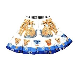 LIANG DIAN YI ZU White Colorful Teddy Bear Skater Shirt Dress Large Knee Length