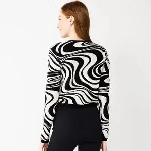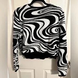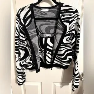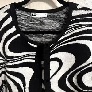 SO Women's Abstract Swirl Sweater Tank & Cardigan Set, Black & White, Sz XL