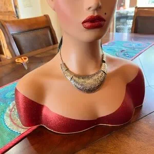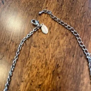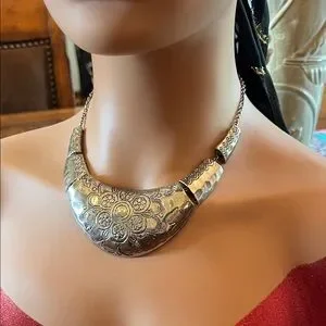 Chico's necklace with floral engravings. Bold silver design. Perfect for any occasion.