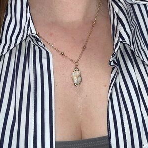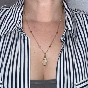 Elegant necklace featuring a gold chain with a white shell pendant. Perfect for adding a touch of nature-inspired beauty to any outfit. One picture is featured with extension and one without the 1 inch extension.