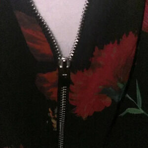 EXPRESS Black floral chiffon Large Romper- Deep Plunge zipper
