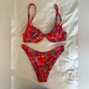 SKATIE - Stand out at the beach with this vibrant pink floral bikini set. Perfect for making a bold statement.