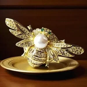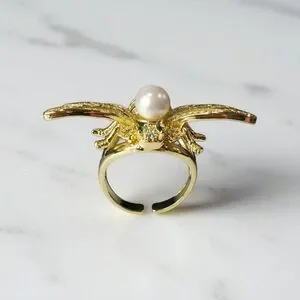 18k Gold Plated Bee Pearl Zircon Crystal Ring