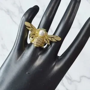 The Sweetest Bee Ring! 18k Gold Plated with Beautiful Sparkling Zircon Crystals and a Pretty Pearl on her head