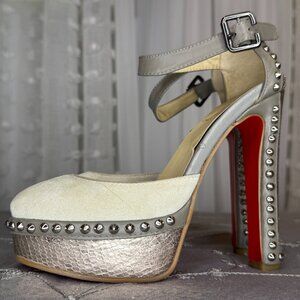 Studded Platform Suede Pewter High Heel Pumps