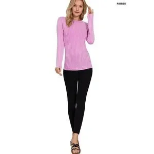 Ribbed Long Sleeve Top - Mauve
