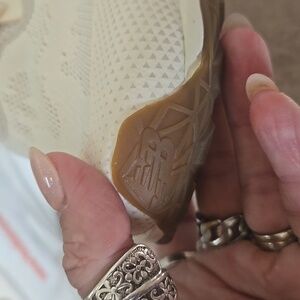 These are absolutely beautiful! Like new. My daughter bought these and wore these maybe once or twice.