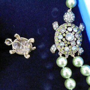 Heidi Daus Crystal Turtle Tortosie Beaded Pearl Necklace & Earrings Set