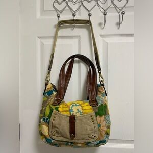 Fossil Vintage Floral Canvas Tote Bag with Brown Accents