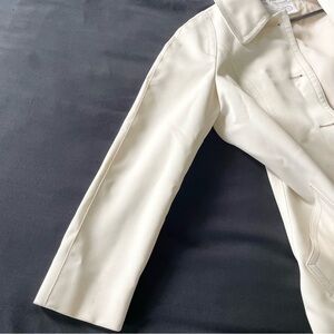 Vintage London Fog Classy Off-White Trench Coat - Size 8. Outer is off-white, inside lining is a soft peachy pink (hard to photograph just right because it looks like it matches pretty well in my photos). Really cute little details like the darts on the sleeves, the high angled pockets, and the seam along the sleeves. Lining is attached to the outer bottom edge which I think is a cool detail (pictured). Is in great condition for a white vintage coat but has some areas that can be spot cleaned, particularly on the left sleeve and around hand openings. May need to be steamed after shipping.