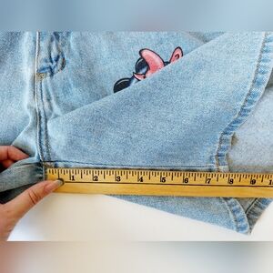 These fun retro mom shorts feature a painted Jerry Leigh Minnie Mouse design on the front left. Light wash, high waisted. Looks cute cuffed, too. Size Medium.