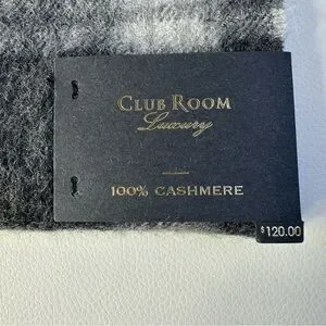 NWT/NEW Men’s Club Room Gray Plaid 100% Cashmere Scarf