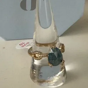 A stunning statement piece that embodies elegance and balance. This gorgeous gold-plated ring features a lab-created London Blue Sapphire Ice Crystal in a teardrop cut, accented with sparkling details for a luxurious finish.