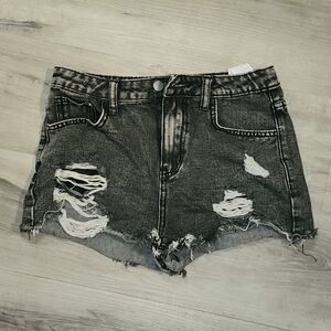 SHEIN Black Distressed Denim Shorts High-Waisted