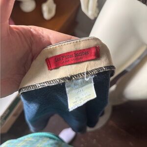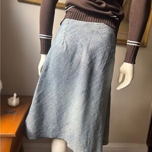 Vintage Les P’tites Bombed buckle skirt. Color is a washed denim with bronze details. Midi length.