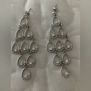 Add a touch of elegance with these stunning silver chandelier earrings. Perfect for any occasion.